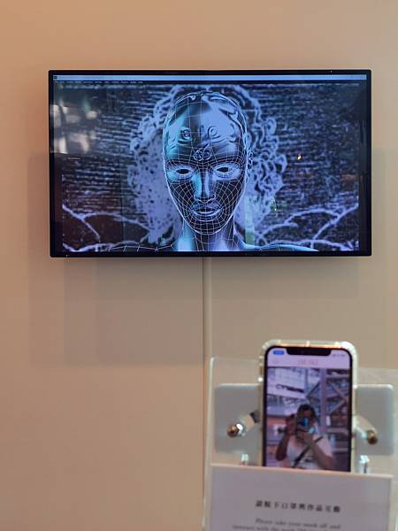 【夏娃克隆創造計畫2】是林珮淳展場的互動體驗之一,當你對著手機前置鏡頭做表情,會很驚訝地發現前方「夏娃克隆」的臉部居然和你一模一樣,彷彿夏娃克隆」正在進行模仿人類,學習人類,複製人類的情感。