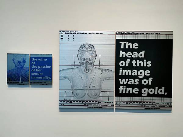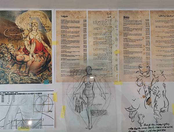 我居然看到聖經的精文和夏娃克隆的資料放在一起,讓我感到相當疑惑,聖經但以理書裡巴比倫王夢中的大像和夏娃克隆啟示錄的關聯性在那裏,林珮淳要告訴我們的創作理念究竟是什麼?帶著一連串的問號,前往第一個展區。