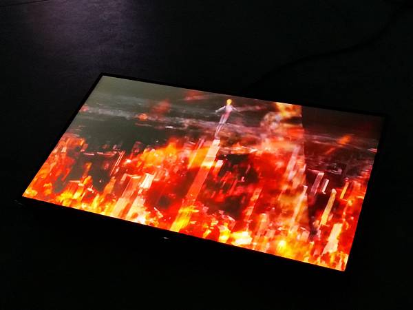 螢幕上的夏娃克隆置身於紐約大廈,以俯瞰的姿態俯視人間的私慾與罪惡,周遭的環境卻是一片烈火,讓我不僅聯想到啟示錄對於末世的描述。