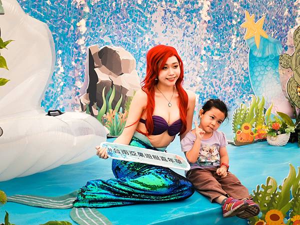 很幸運地遇到不定時出現的小美人魚,看到許多家長都興奮地帶著小朋友和美人魚合照。