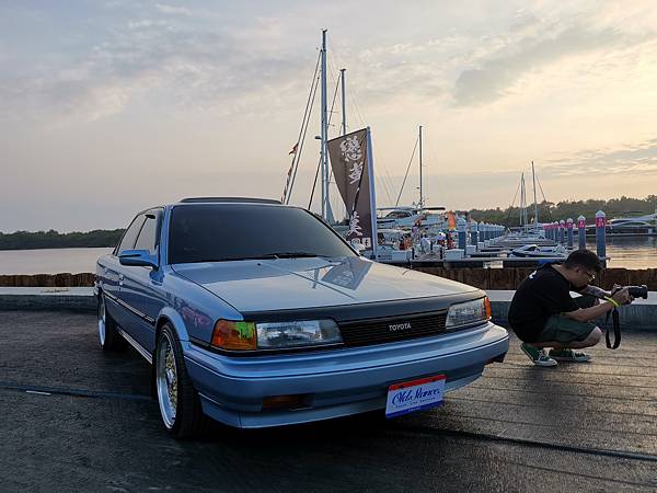 碼頭邊的特色車區,停放著許多讓人目不暇及的豪車。看到不少男生都拿起相機猛拍。