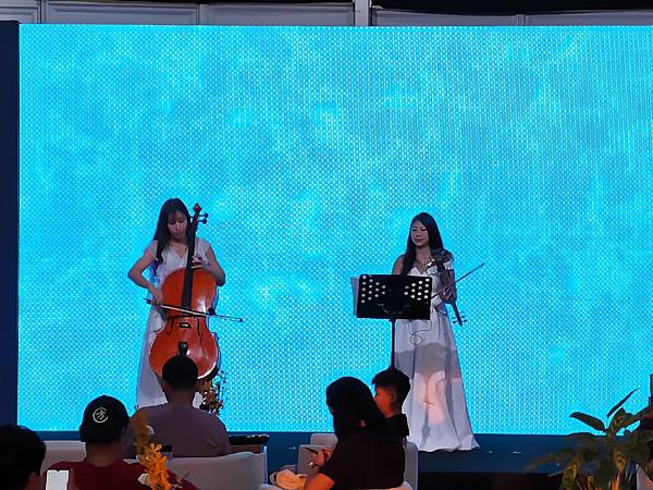 聽到音樂旋律響起,起身前往二樓欣賞Live band的演出。