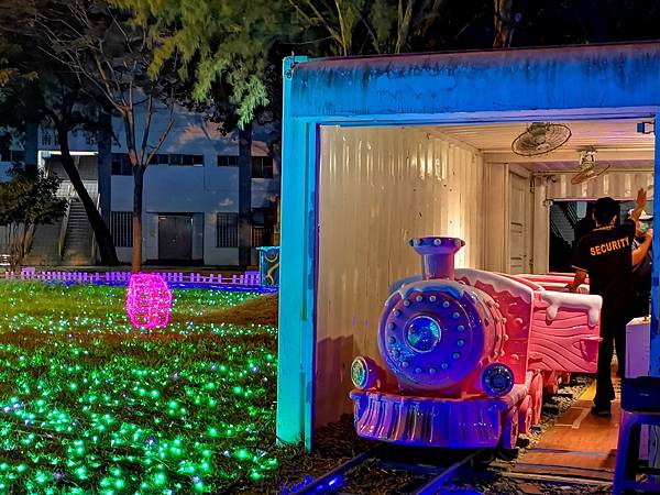在屏東公園不只有藝術燈飾可以欣賞,還有小火車、咖啡杯等遊樂措施可以遊玩。