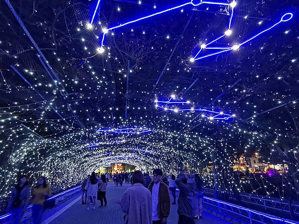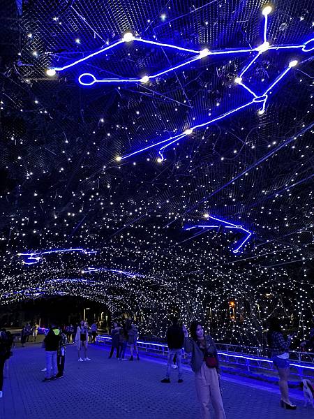 漫步在廊道裡,抬頭望著上方的點點星光,藍色的光束組成各個星座。