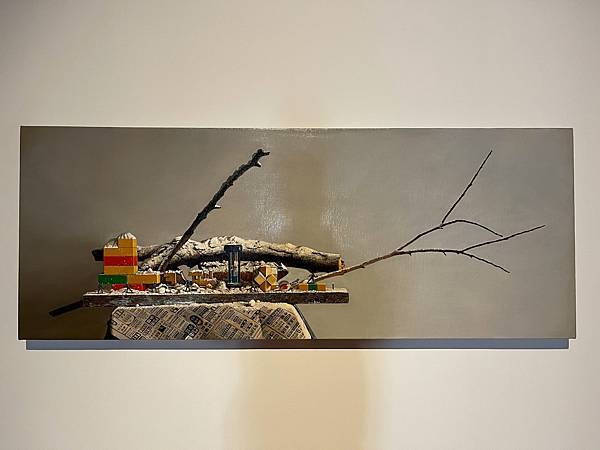 這些勾起童年記憶的物品及樹枝都覆蓋著厚厚的一層石灰,好像代表著這些逝去的時光,已經在我們內心深處的角落擺放太久,不曾再被翻起過。