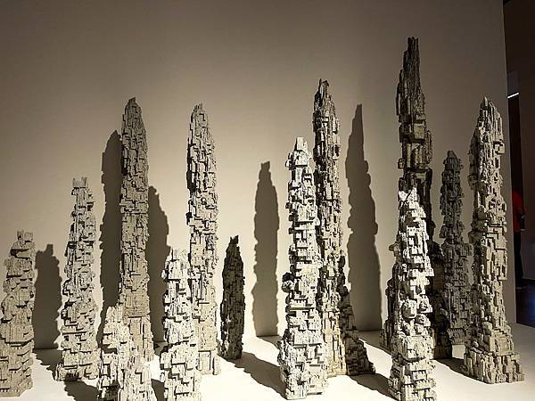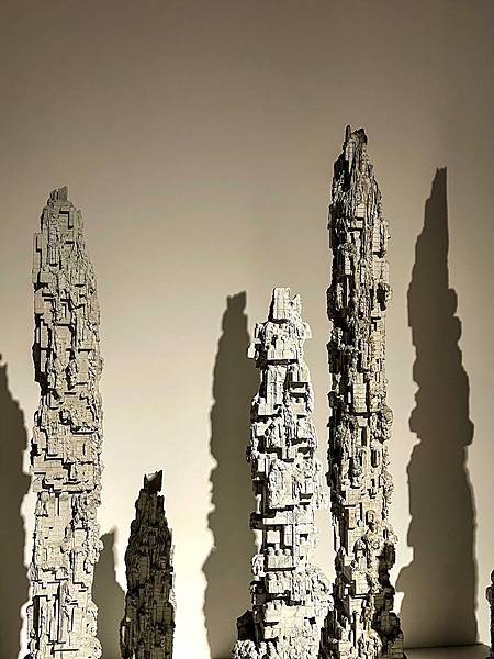 游孟書的《悲滅說》,當初我在這件作品前駐足許久,很難理解眼前一根根由積木組合而成的石柱,和主題《悲滅說》的關聯性在那裡?
