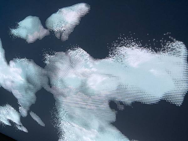 陳恩澤的《造雲》是以人造雲為主題,試圖用分析和還原作為影像製作的結構,人造雲的動態與即時演算出的有機體,兩種不同方式產生的影像,貼上雲的材質,還原至三維的影像空間,以聲音對照雲的生成與變化。