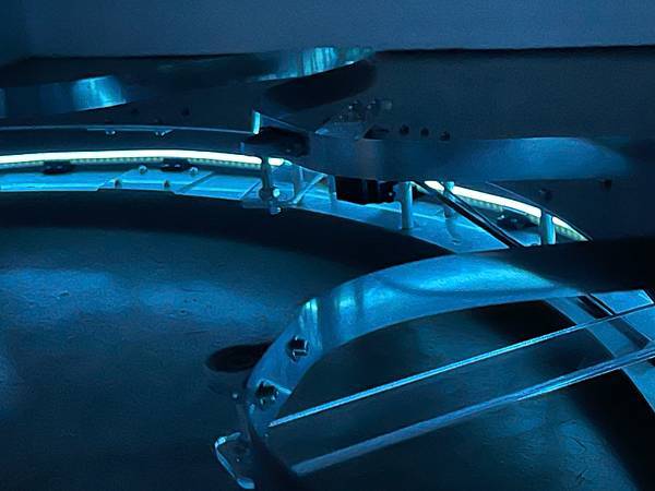 《沉著未盡的波形》想要表達將時序排列成可讀取的波形,切隔成細碎的長度,即便紊亂、失序仍然需要保持沈著,等待一刻的完整。思考在穩定循環的狀態下,如何感受時間的流動。作者以聲音象徵被切割的時序,緩慢的波形呈現時間被擠壓、扭曲的過程,形成動態平衡。
