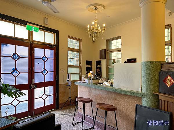 老宅特有的磨石子地板,牆壁上的唯美窗花,天花板上的華麗吊燈,磨石子吧檯及圓錐梁柱都維護著相當完整。
