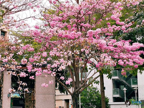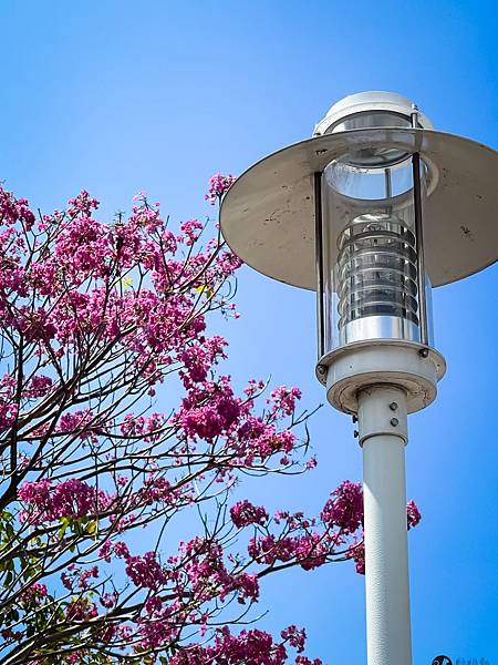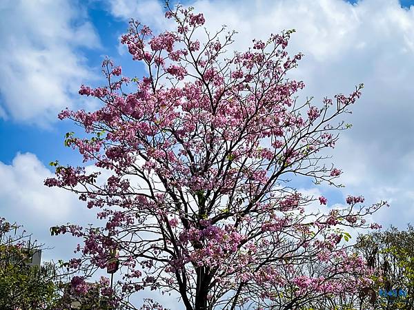 粉嫩綻放的粉紅風鈴木花朵,宛如一顆顆懸掛在樹上的粉紅棉花糖,成為一幅浪漫又可愛的畫面。