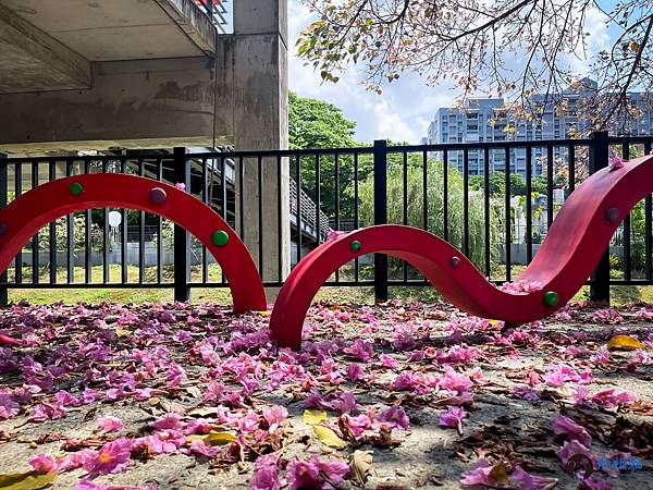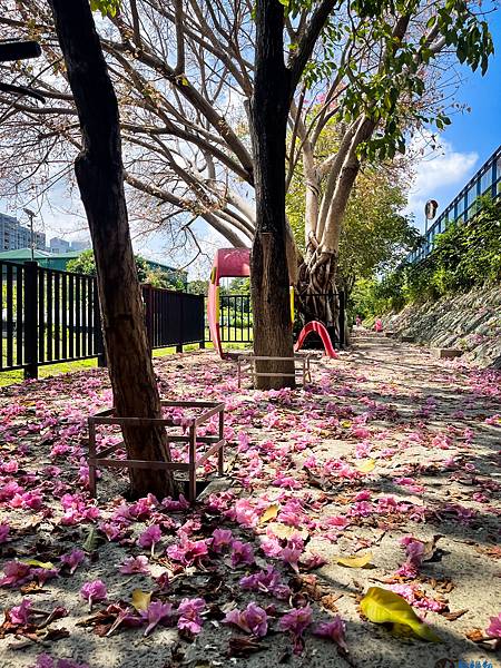 沿途的粉紅風鈴木不少都已經逐漸凋謝,只能看到零星的粉紅花瓣。