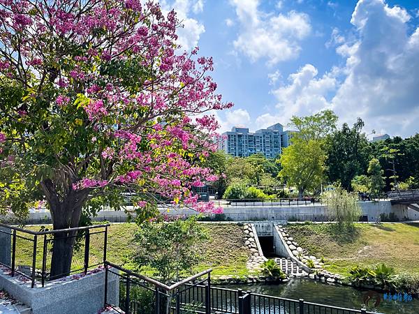 當我走到最後的鳳凰吊橋,沒想到居然還有一株盛開的粉紅風鈴木,簡直是意外之喜。