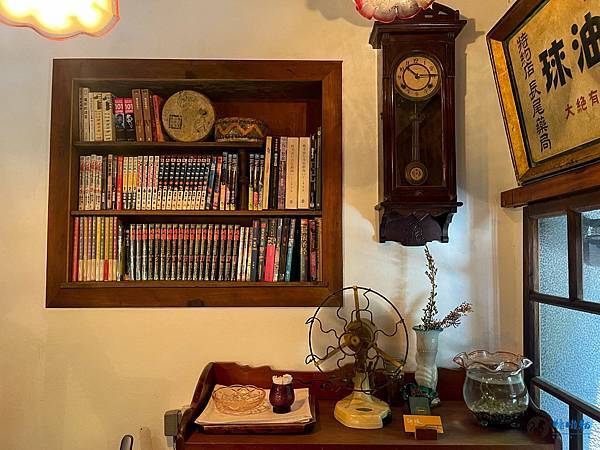 在如此文青且懷舊的空間裡,原本以為書櫃上會擺設著文青書籍,沒想到居然是漫畫,讓我整個跌破眼鏡。