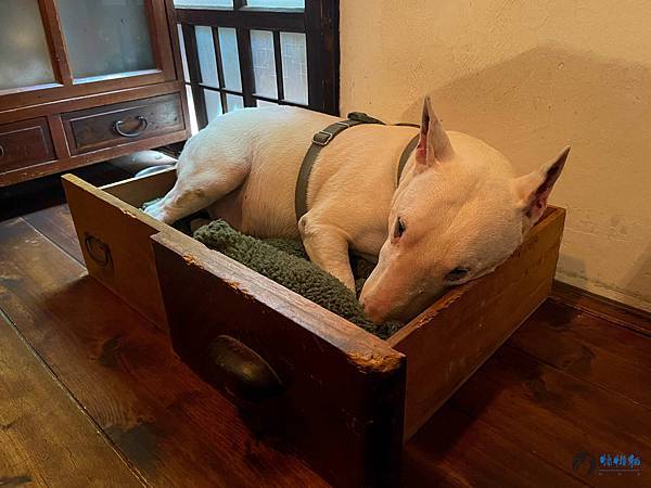 來到櫃檯區,老舊的電風扇,依舊努力的在發光發熱,原本在庭園漫步的Hinoki,此時已經在小窩中,昏昏欲睡。