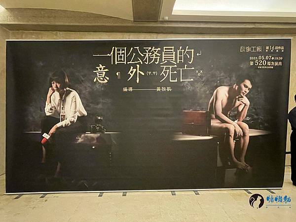 《一個公務員的意外死亡》首映場於2022年5月7日在台南文化中心盛大演出,由於疫情再次爆發的緣故,許多人選擇退票,當天抵達演藝廳會場時,只坐滿相近一半的位置而已。舞台的投影幕上撥放著故事工廠在疫情期間遇到的辛酸與感動。不多時燈光緩緩的黯淡下來,舞台上隨即散發出微弱的光芒,吸引著每位觀眾的目光,鄭志偉飾演的廟公,手執月琴在廟門口彈唱,以傳統「唸歌」的形式,為今天的演出揭開了序幕。