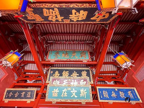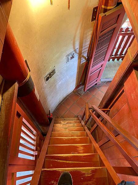 隨著階梯前往二、三樓,在二樓的文昌帝君旁看到許多考試的准考證影本,都是考生來求個好成績。三樓供奉魁星爺,不過由於我是基督徒,所以就沒有過多停留,只是從三樓俯視著孔廟的建築群,別有一番風情,要下來的時候,樓梯的間距真的很窄,要特別小心,不然跌倒,就可能直接滾落下去。