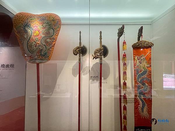 在禮器我居然看到斧 、鉞,想說這二種不是兵器嗎?後來才得知斧 、鉞和提燈、提爐、扇、傘統稱為「儀仗」,用於祭典正式開始進行的迎神儀式中,在古代 是只有皇帝出門時才會使用。
