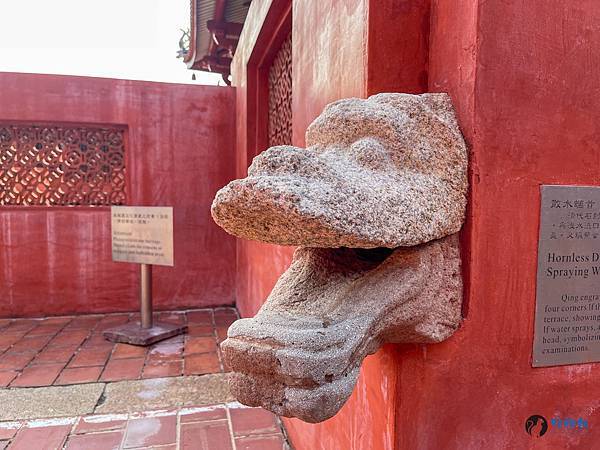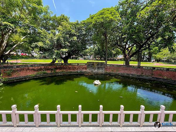 「櫺星門」遺構前面就是「泮池」得所在。泮池成半圓形,周圍有著石欄杆,而在泮池北邊與庭園相連的磚牆上嵌有「思樂泮水」碑,不過現在文字已經相當模糊了。泮池養著許多烏龜,有在水池悠然游著,也有在石頭上曬著日光浴,不過烏龜和石頭的顏色簡直都快融合再一起,如果不是有看到石上烏龜下水的畫面,沒仔細觀察,真的看不出來石頭上居然有著烏龜。