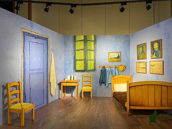 「亞爾的臥室」,在台北及高雄場就有的實景藝術裝置,這是梵谷陪伴生前最後二年創作時光的臥室,樸實簡單的擺設洋溢著美好安穩的感覺,有誰想過此時的梵谷正飽受著精神病的折磨呢,走進畫中感受著此時梵谷的心境,讓人感嘆一位跨時代畫作大師就此逝去,直到死亡來臨前,依然持續著他所熱愛的繪畫。