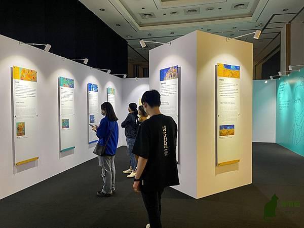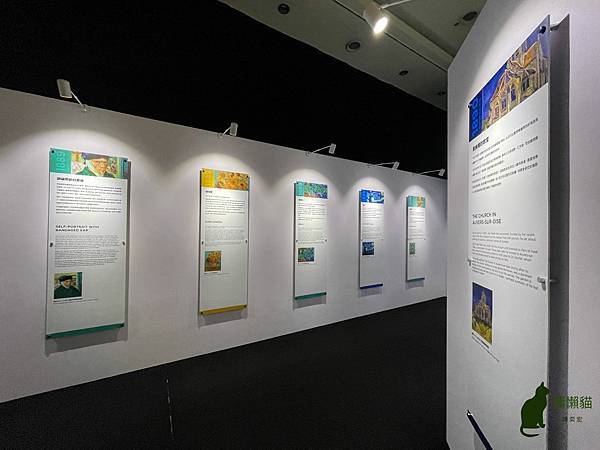 「認識梵谷」靜態展示區,這區展示了梵谷生平比較膾炙人口的經典名畫如〈向日葵〉、〈星夜〉、〈麥田群鴉〉、〈綁繃帶的自畫像〉、〈奧維爾的教堂〉、〈紅色葡萄園〉等,每幅畫作旁的文字述說著梵谷當時的心境,也讓第一次接觸梵谷的民眾們,在觀賞畫作的同時,認識這位傳奇畫家梵谷,如彗星般短暫而傳奇的一生。