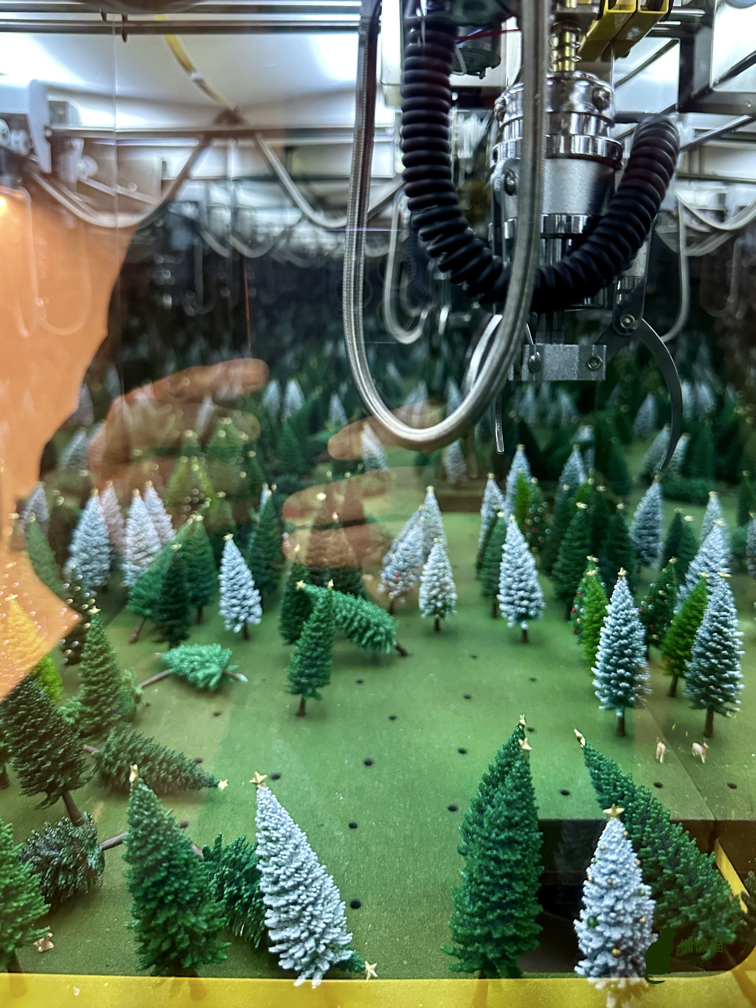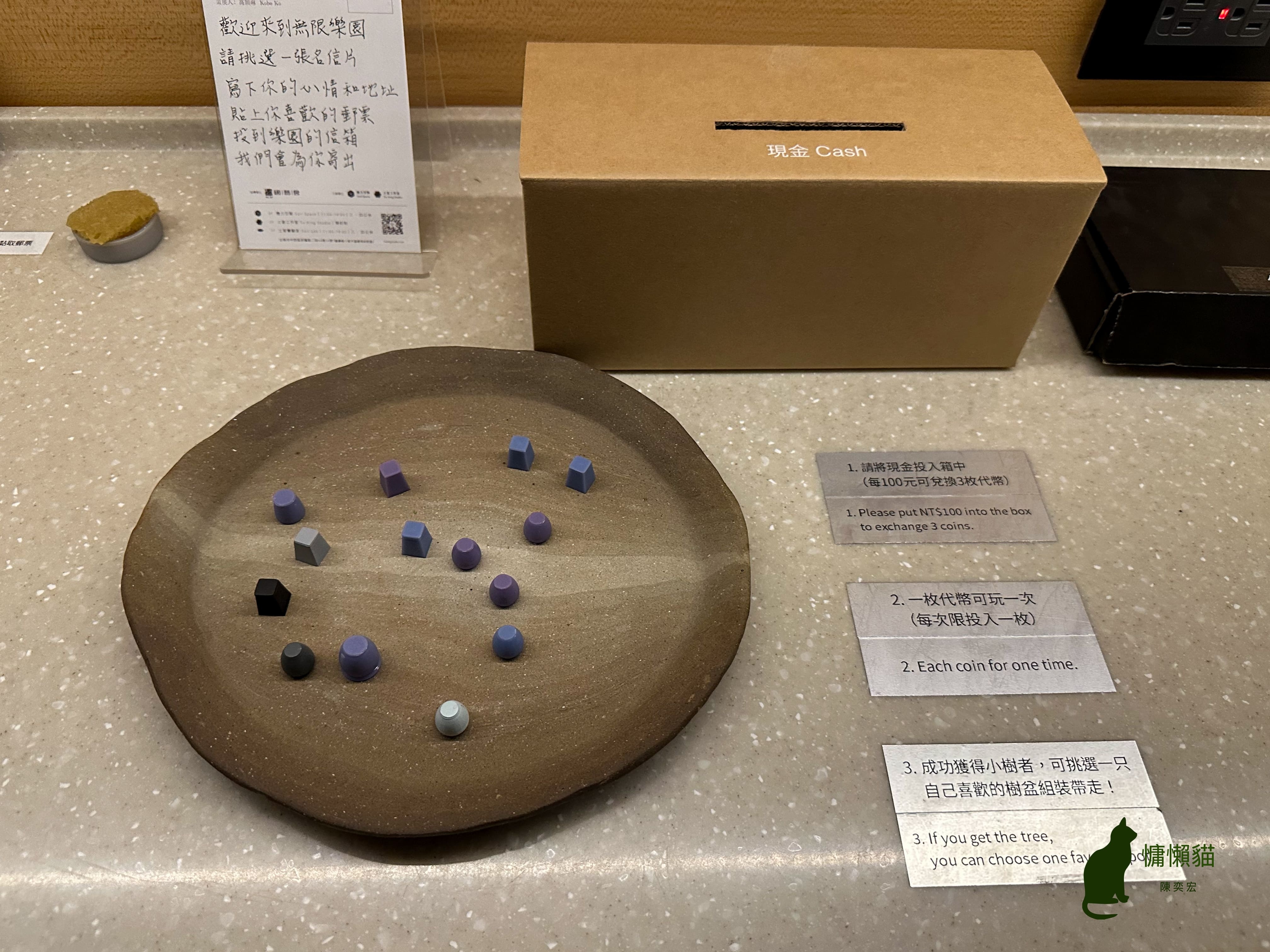 在購票時,店家會給我們每人一枚硬幣,可以用來玩夾娃娃機,只要順利獲得小樹的民眾,就可以挑選自己喜歡的一件樹盆組裝帶走。